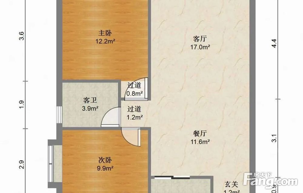 【房屋介绍】两室两厅一卫,实用面积无浪费,餐厅客厅可分离,大两居布局,空间利用合理;
