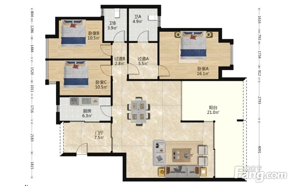房屋户型方正,景观布局合理,设计实用,空间舒适,格局优越,采光通风良好